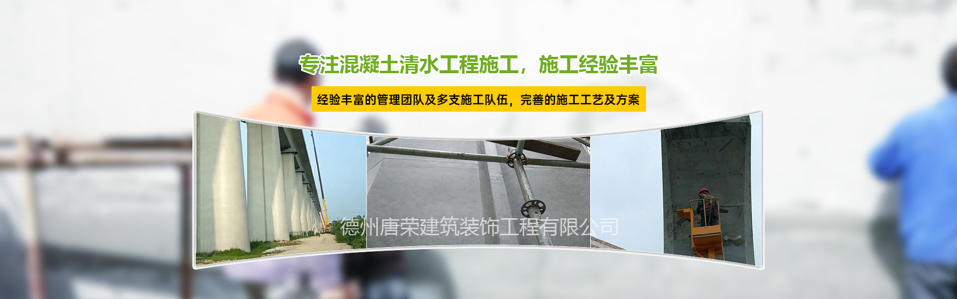 德州唐榮建筑裝飾工程有限公司是一家從事清水混凝土裝飾保護(hù)的專業(yè)承包施工商,公司是由一支幾十人清水裝飾涂裝隊(duì)組建而來公司主要致力于清水混凝土后期混凝土缺陷修補(bǔ)、無痕修補(bǔ)、混凝土色差調(diào)整、仿清水混凝土施工......